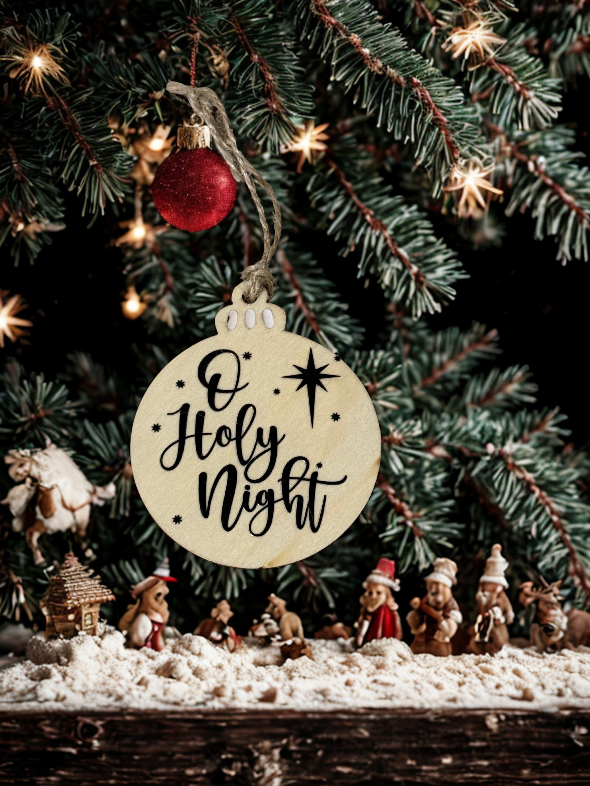 Crafted from natural wood, this Christmas ornament beautifully captures the spirit of the season with the meaningful inscription "O Holy Night" alongside symbols of sacred hope and love. Its timeless design adds warmth and reverence to any holiday décor, making it a thoughtful addition to your Christmas tree or a cherished gift that evokes festive reflection and heartfelt celebration.