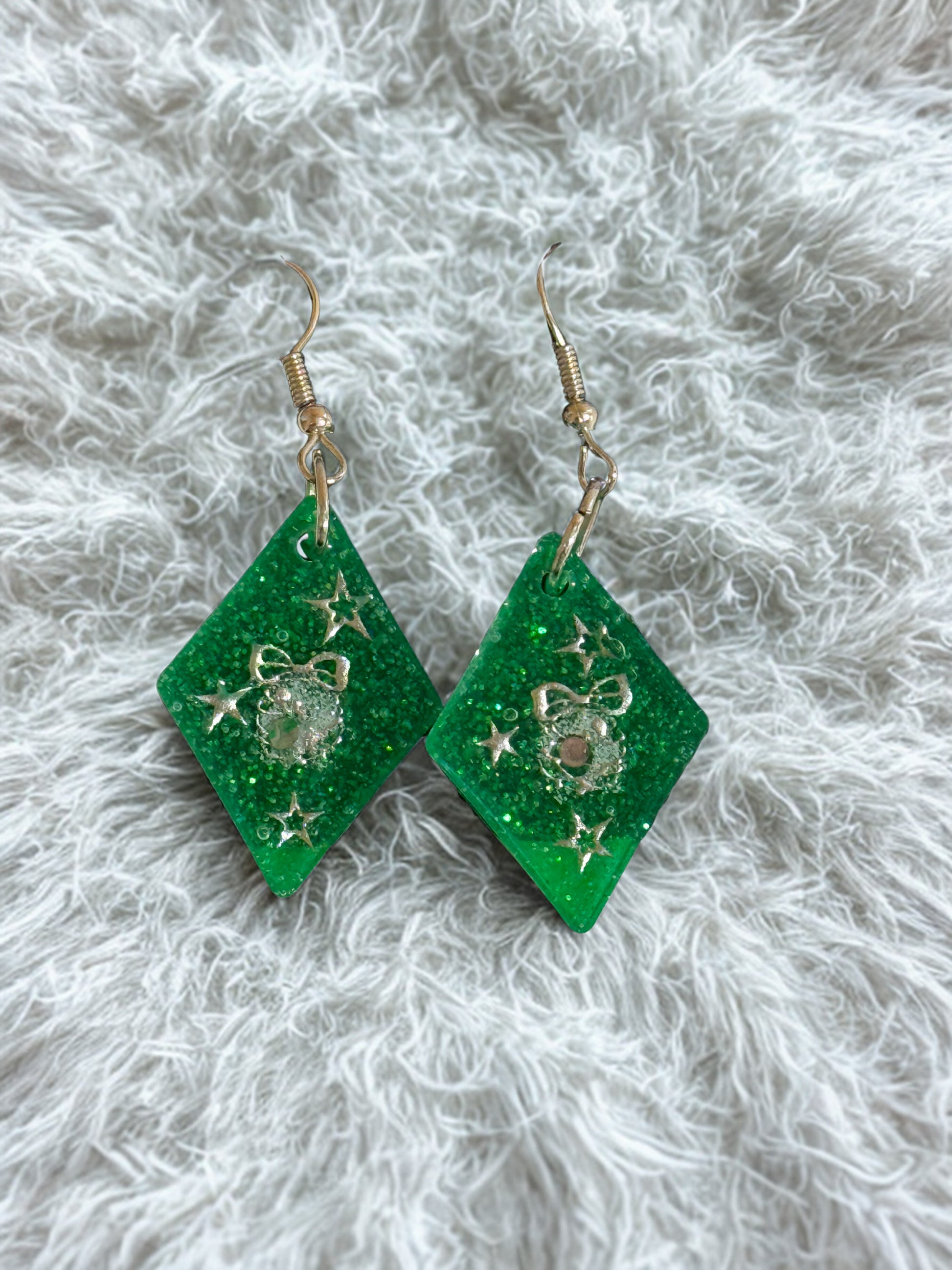 These 1-inch earrings combine expert craftsmanship with festive design, featuring vibrant green resin set within finely detailed silver wreaths. Ideal for the Christmas season, they offer a sophisticated accessory that complements seasonal attire with subtle elegance and lasting quality.