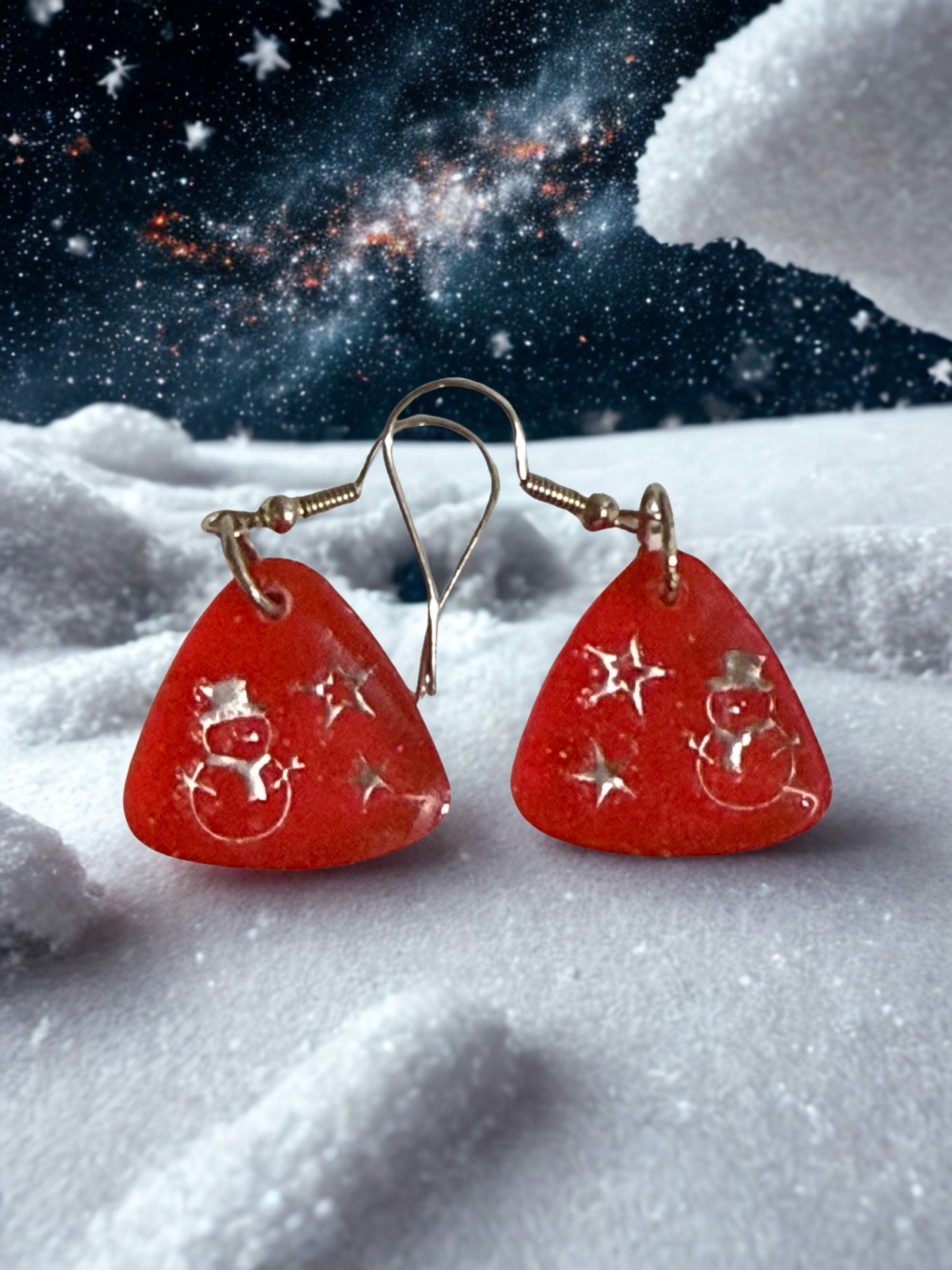 These 1-inch resin earrings feature a silver snowman design with a shimmering red finish, perfect for both adults and children. Their festive winter look adds a subtle holiday charm while remaining lightweight and comfortable for all-day wear. Ideal for adding a touch of seasonal elegance to any outfit.