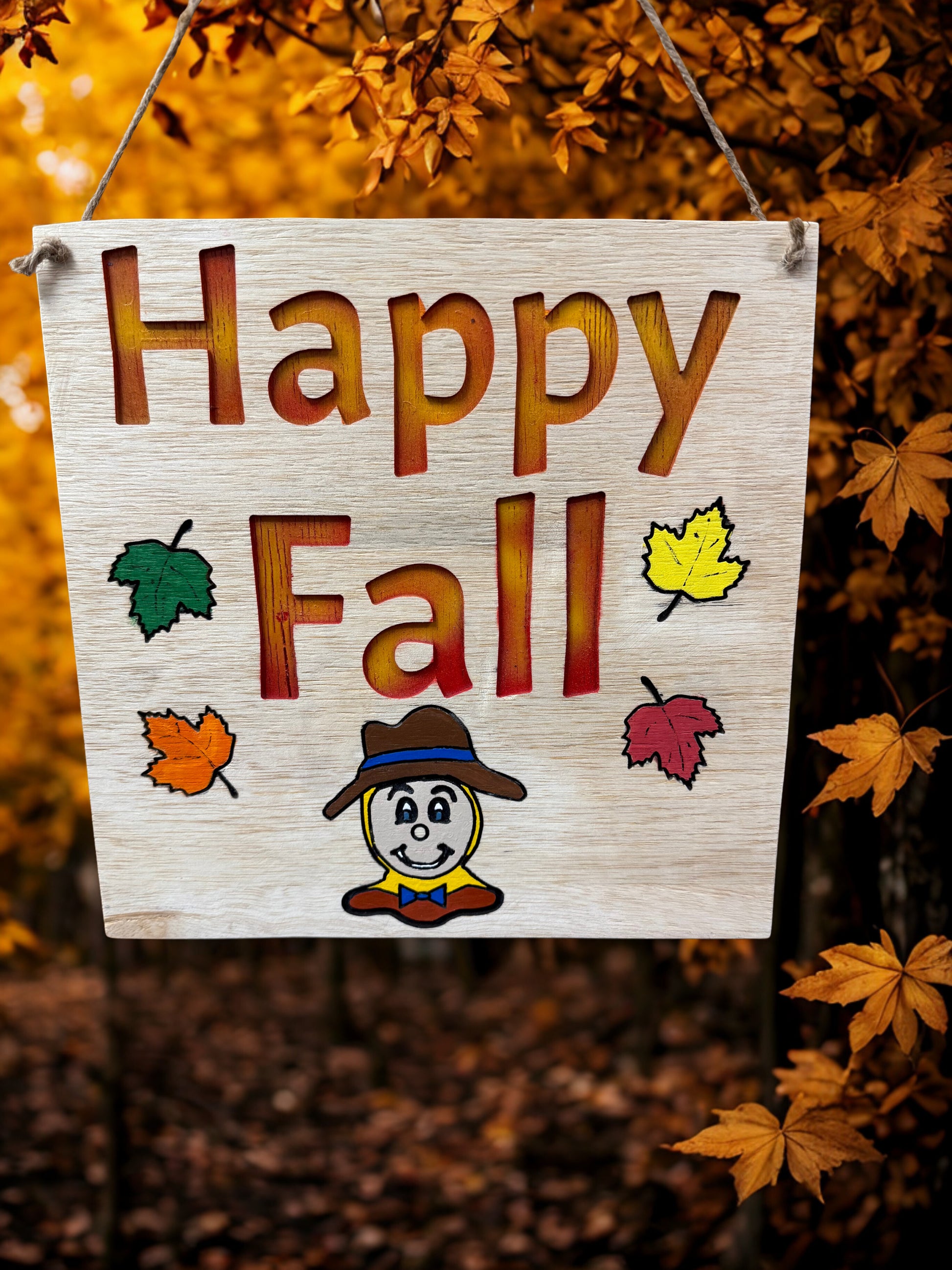 Add a splash of autumn fun to your space with this playful pine wooden sign! Bursting with bright fall colors, a cheerful scarecrow, and swirling leaves, it’s the perfect way to say “Happy Fall” at your office, home, or business. Let the cozy vibes and festive charm bring smiles all season long!